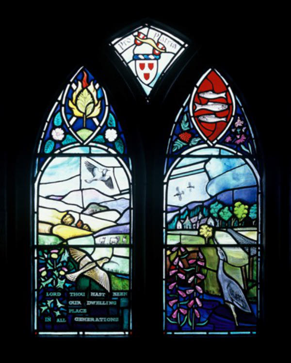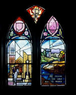 The long West Window in the Chancel is a reproduction of a window in a Nuremberg